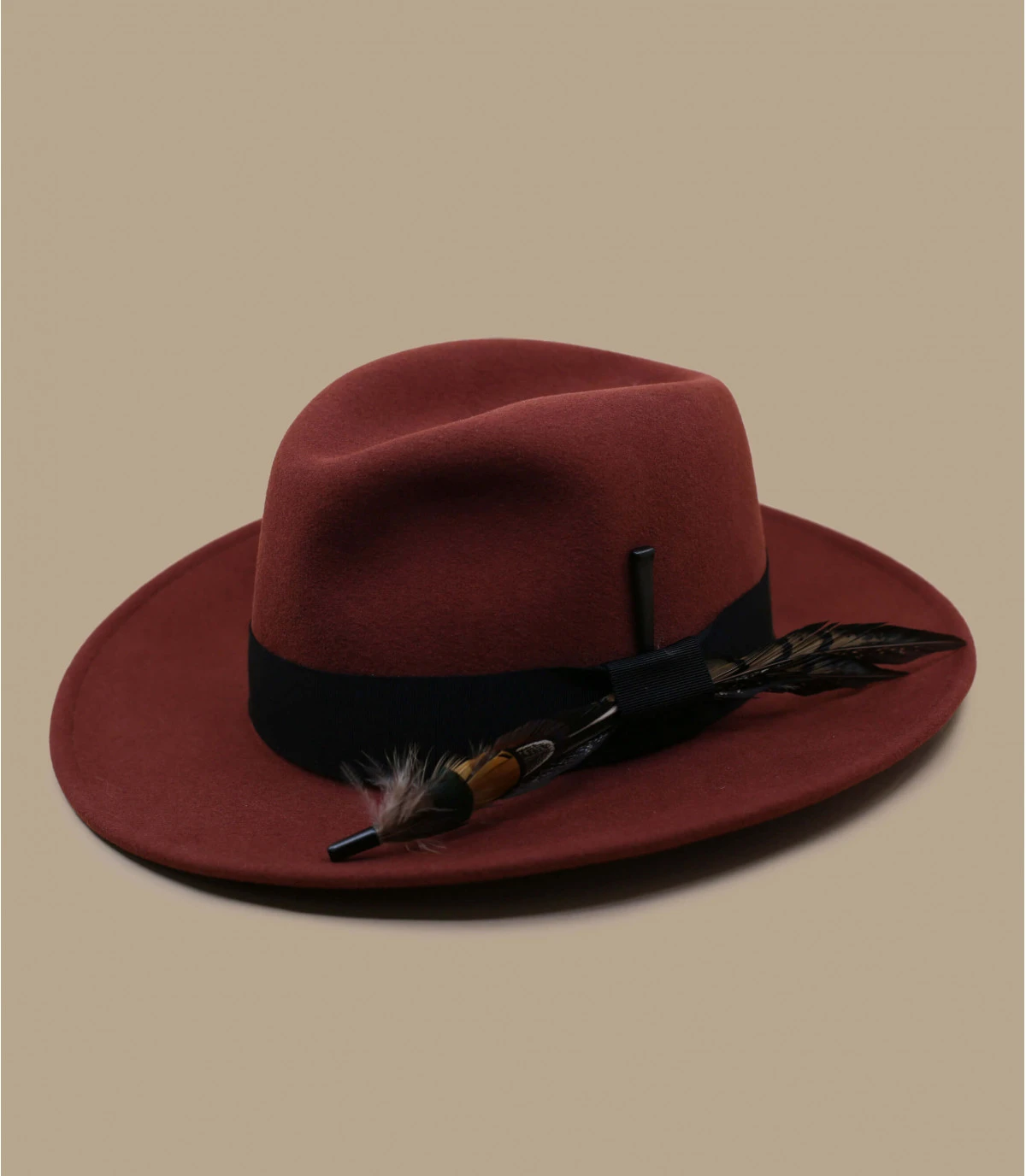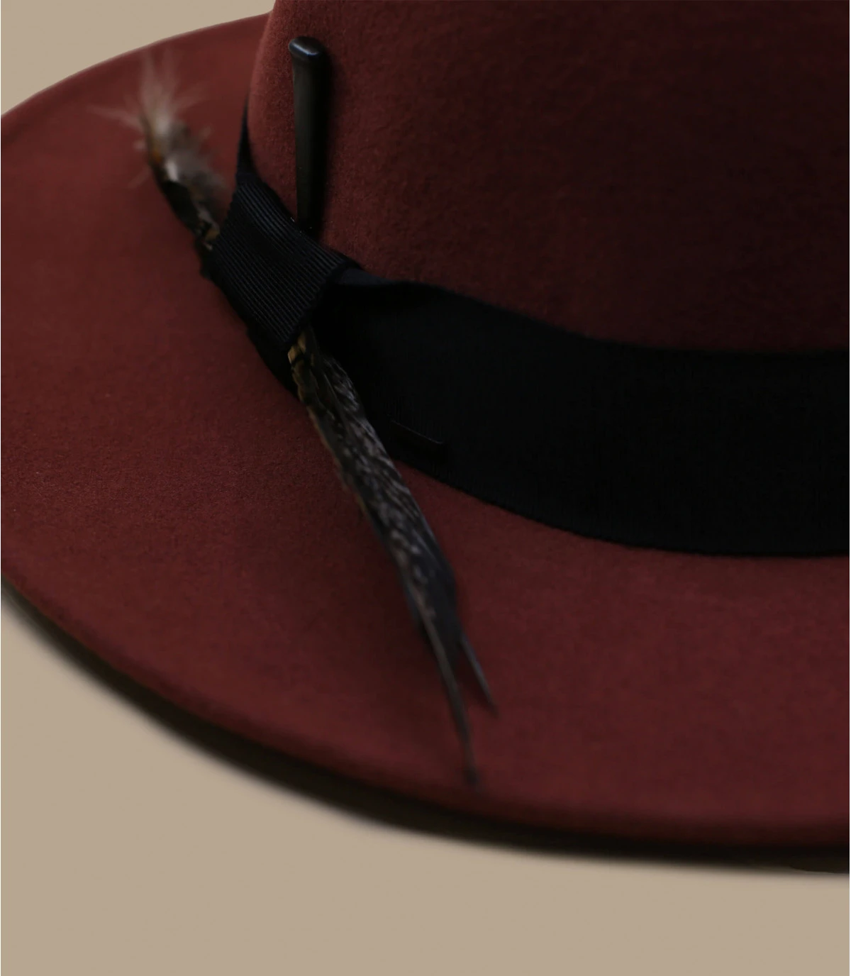 Les créations du Californien Bailey sont toujours originales, comme ce magnifique chapeau élaboré aux États-Unis en feutre déperlant Litefelt®, relevé d’une grande plume et d’un clou en métal.