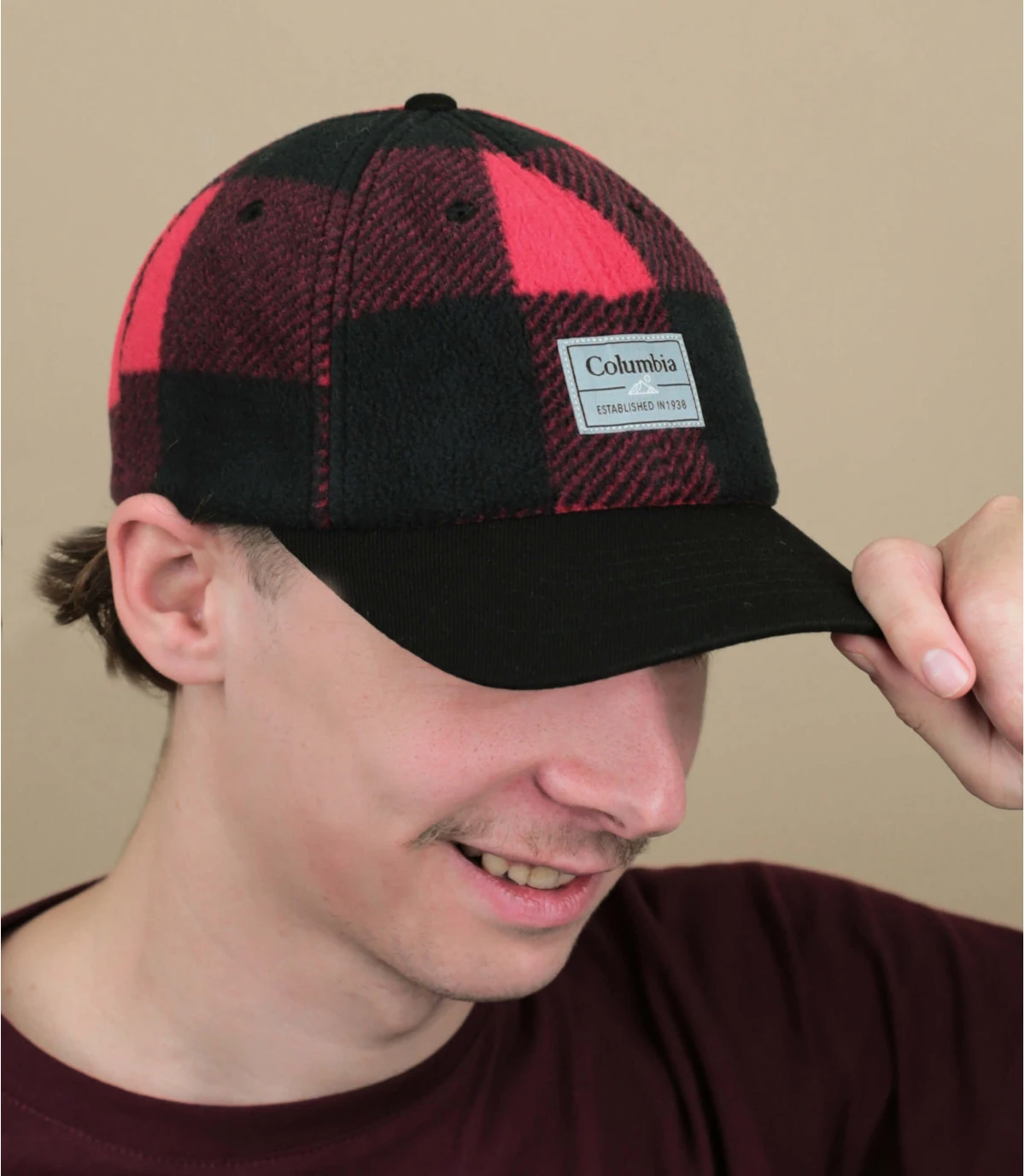 Restez branché même en pleine nature avec cette casquette curve rouge. Elle arbore un motif à carreaux sur le dessus et sa visière est noire. A l’avant est brodée un patch discret avec le nom de la marque Columbia.