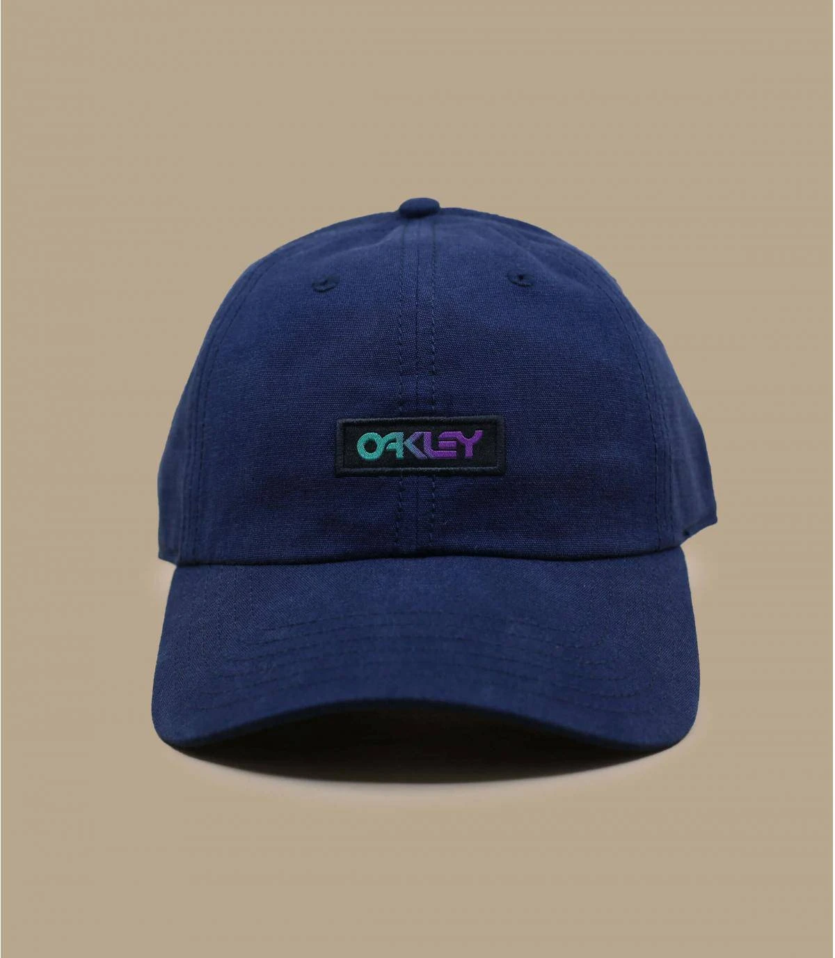 Cette magnifique casquette bleu marine Oakley est relevée d’un petit logo brodé coloré. Elle possède une visière courbée et est composée de coton bio.