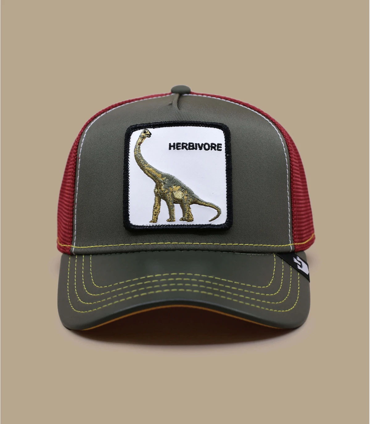 Revivez l’époque des dinosaures en portant cette casquette trucker verte avec un filet rouge. Le patch avant représente un “lézard du tonnerre” alias un Brontosaurus, un géant herbivore de l’époque du Jurassique.