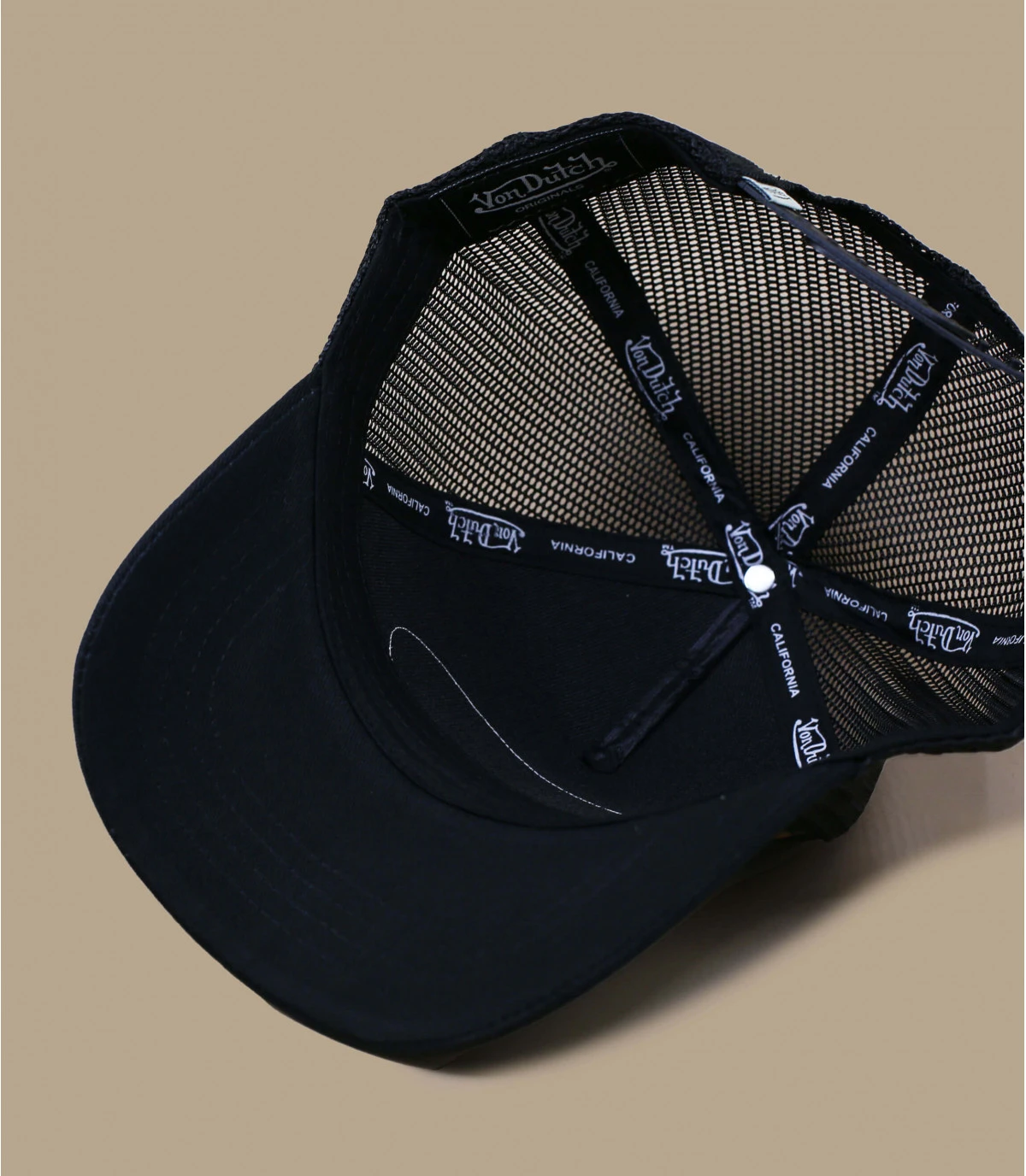 Cette casquette trucker noire se fera remarquer à coup sûr avec ses mini-tatouages fun et colorés ! Elle possède un filet mesh noir à l’arrière. Le patch noir et rond avant porte les mots “Von Dutch California”.